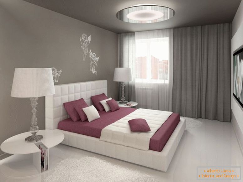 Weiße Möbel schaffen eine ebene, ruhige Atmosphäre im Raum, die mit hellen Akzenten verdünnt werden kann. Zum Beispiel, Kissen mit bunten Kissenbezüge, Bilder, Statuetten werden organisch aussehen.
